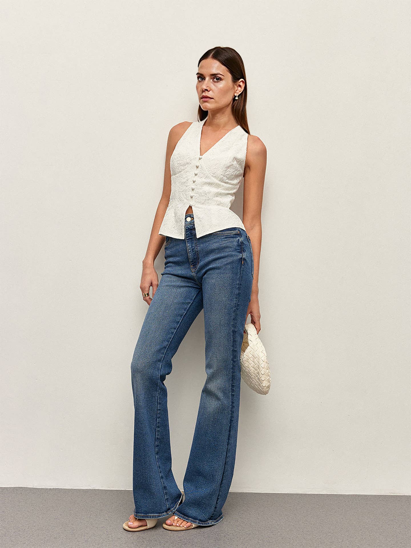 V-neck single breasted white lace edge vest