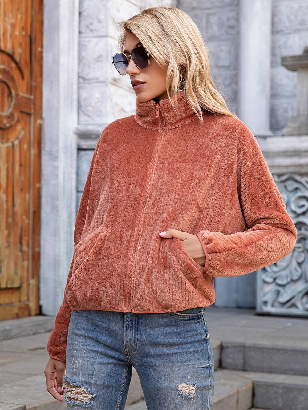 Velveteen zipper top women's fashion hoodie coat