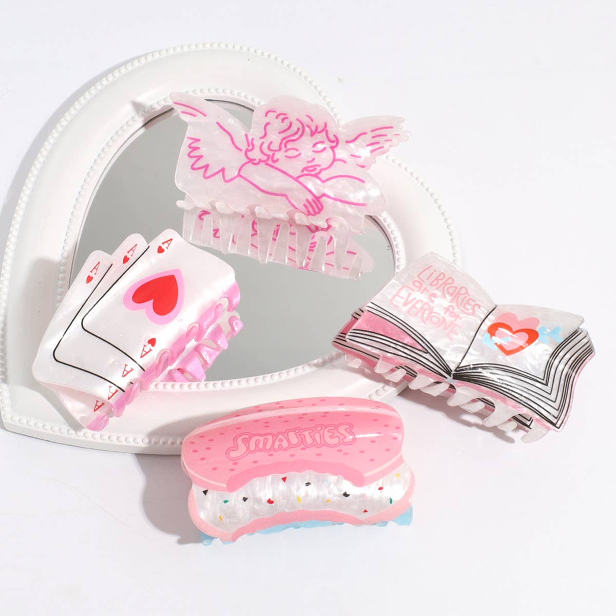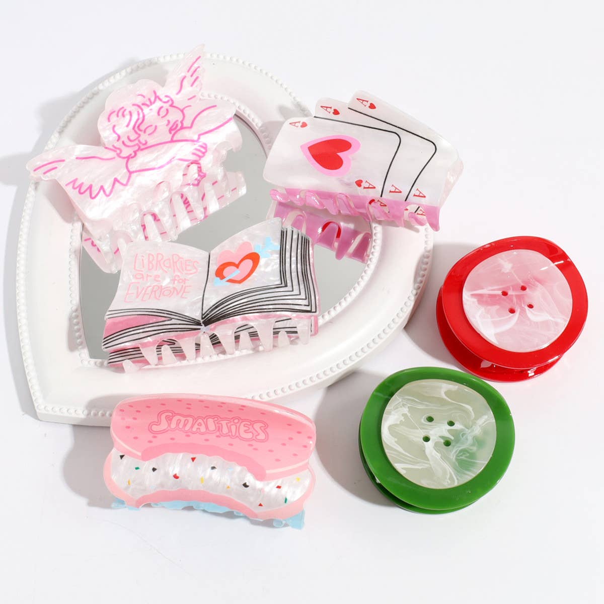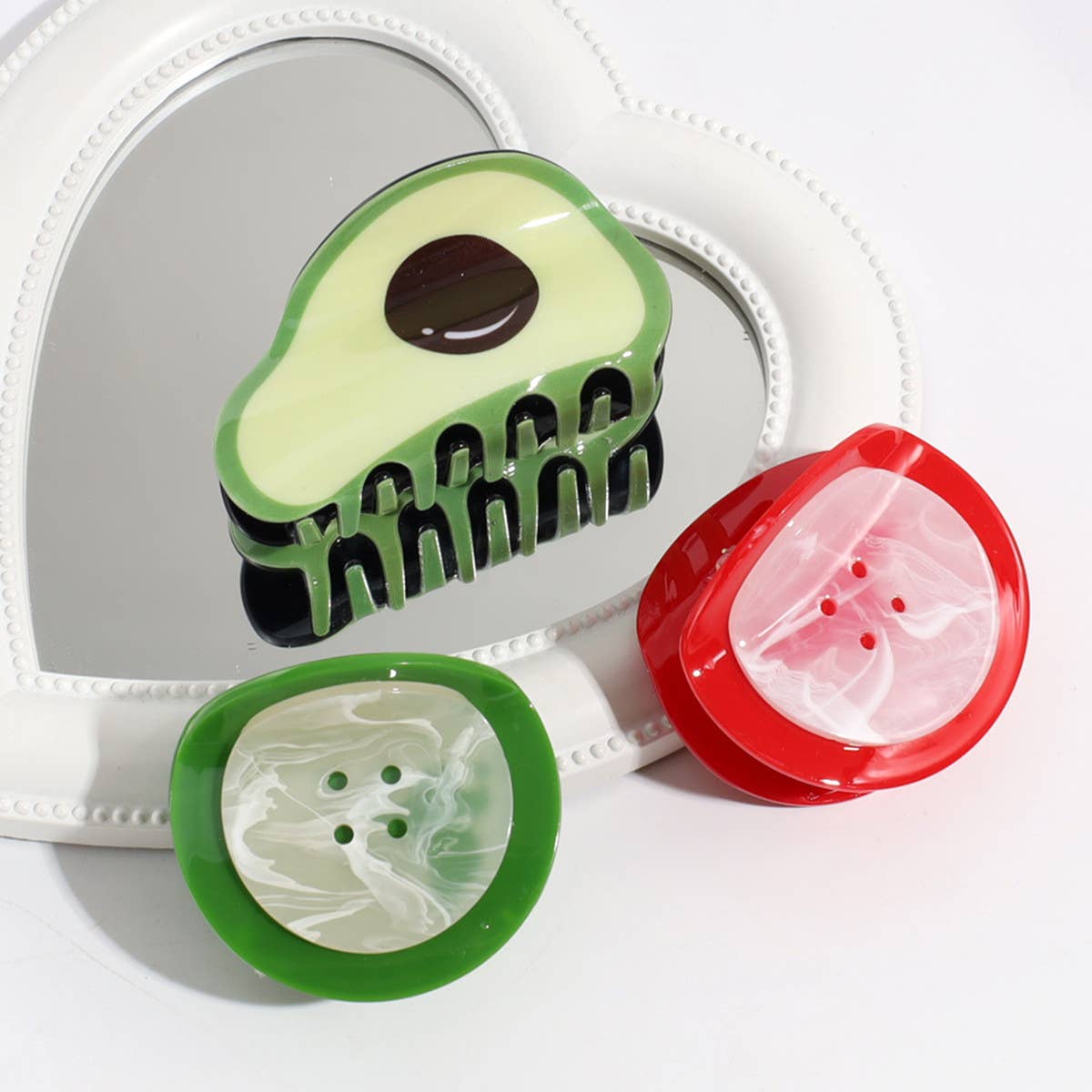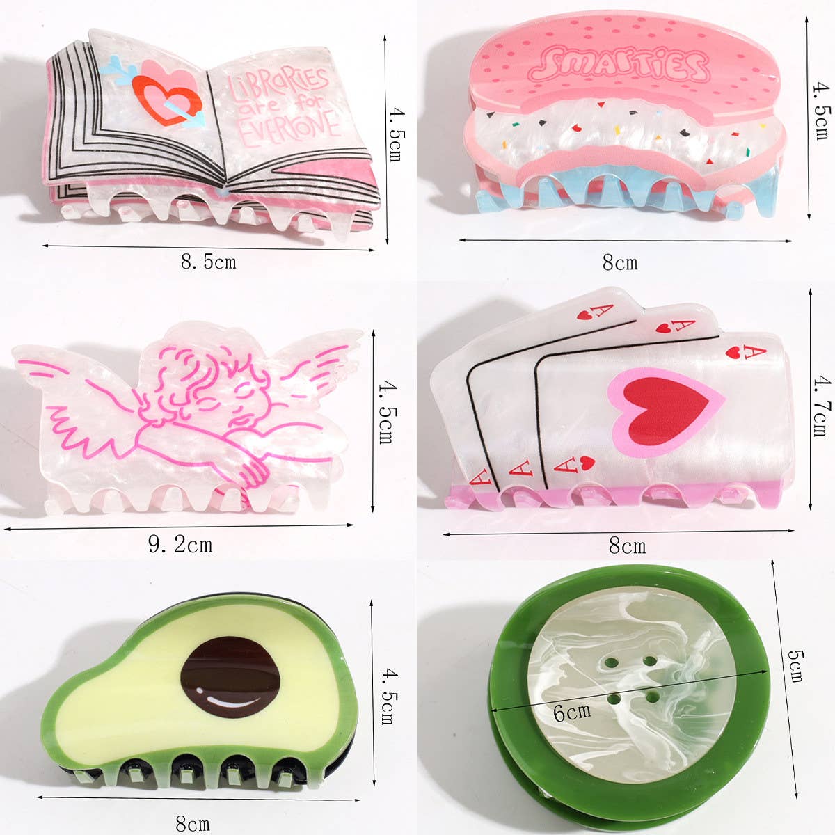 ? Material: Acetate\n? Design Elements / Variants:? Book ??? Cake ??? Green Button ??? Avocado ??\n? Style: Quirky, artistic, and playful ? perfect for statement styling and gifting\n\n#acetatehairclip #bookhairclip #cakehairaccessory #buttonhairclip #avocadohairclip #quirkyhairaccessory #funhairclaw #creativehairclip #uniquestyleclip\nTypes of products that will be on the shelves during this period:\nHair claw clip set, large hair claw clip, flower hair claw, boho claw clip, pearl hair claw, modern hair claw, rhinestone claw clip, colorful hair claw, hair clips claw, hair clips for women, wholesale hair clips, bulk hair clips, hair clip display, clips for hats, clips for kids, mini hair clips, trendy hair clips, fashion hair claws, strong hold hair clip, acrylic claw clip.