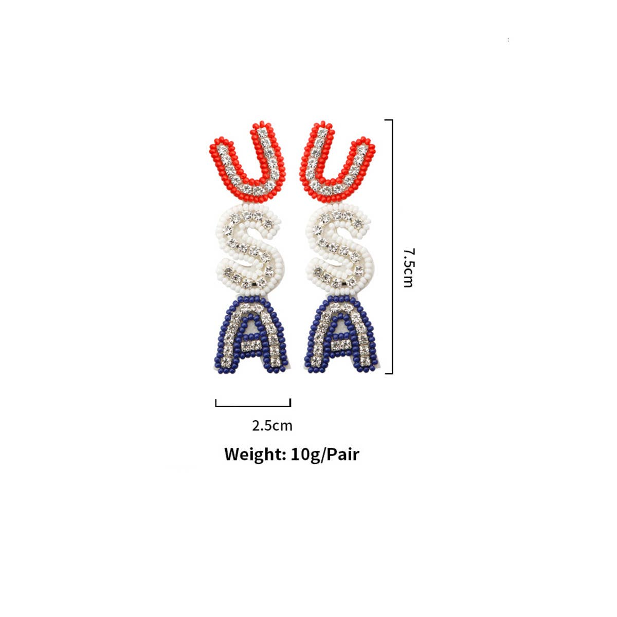 VINTAGE AMERICAN FLAG HANDWOVEN EARRINGS\nDIMENSIONS: OS(2)\nPOLYESTER\nMADE IN CHINA \nWOMEN'S LOOSE EARRINGS, WOMEN'S BOHEMIAN EARRINGS, RICE BEAD EARRINGS, HAND-WOVEN EARRINGS, TASSEL EARRINGS