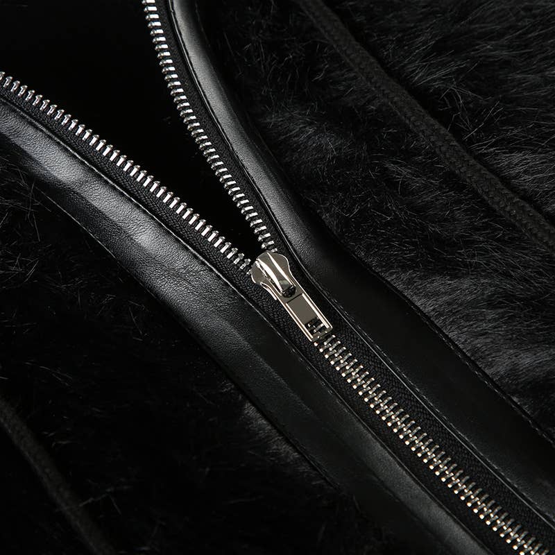VINTAGE CRATERED PATCHWORK FURRY HOODIE JACKET