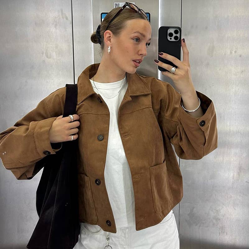VINTAGE FRENCH LAPEL SINGLE-BREASTED BROWN JACKET