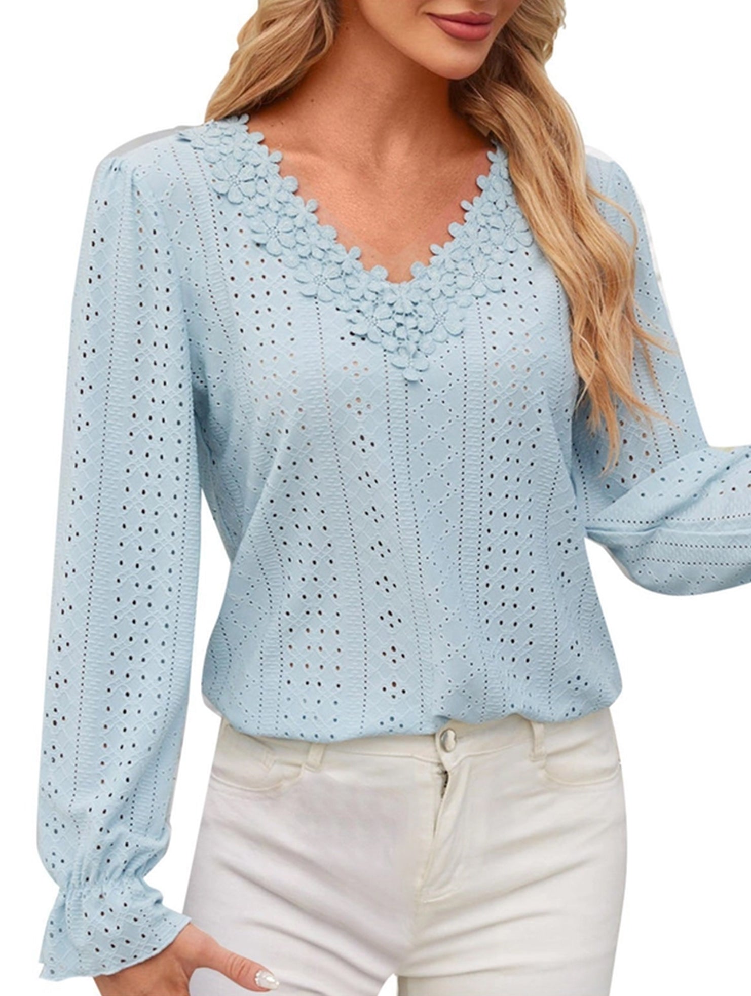 Vintage Hollow Crochet V-Neck Long Sleeve Shirt_RCZY01331