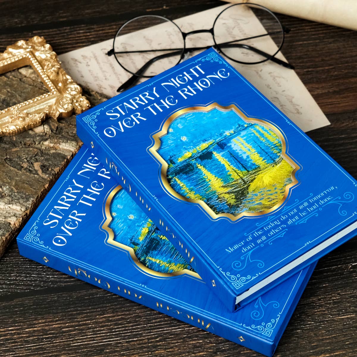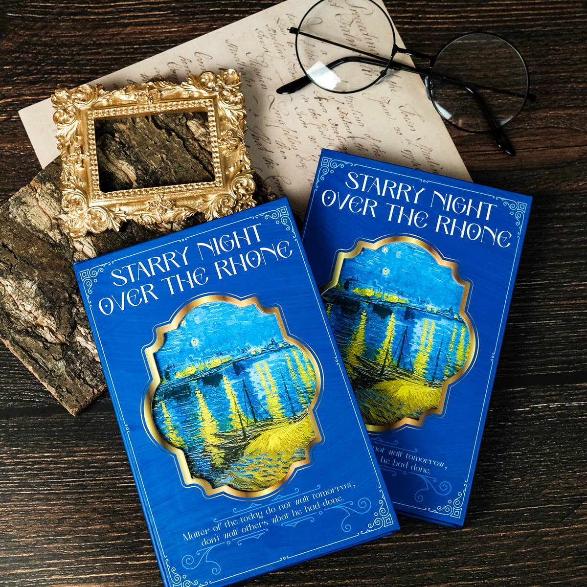 VINTAGE OIL PAINTING STAR AND MOON BLUE NOTEBOOK\nSIZE:OS(2)\n100% WOOD PULP\nMADE IN CHINA\n\nNOTEBOOKS,NOTEBOOKS JOURNALS,NOTEBOOKS AND JOURNALS,NOTEBOOK SPIRAL,NOTEBOOK PLAIN,NOTEBOOK POUCH,NOTEBOOK LINED,NOTEBOOKS SPIRAL,NOTEBOOKS FOR SCHOOL,NOTEBOOKS BULK,HORIZONTAL LINES, THICK BOOK, HARDCOVER, PORTABLE, HARDCOVER PATTERN, 2024 NEW STYLE, RETRO, BUSINESS OFFICE NOTEBOOK, OIL PAINTING, PERSONALITY, CREATIVITY, SIMPLICITY, CUTE, CARTOON, MAGNETIC BUCKLE,