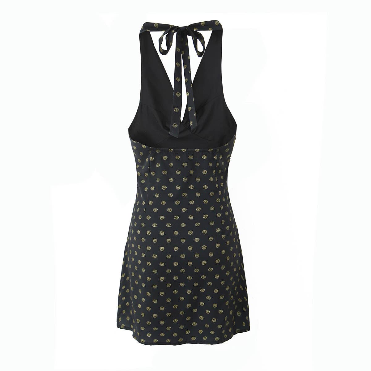 Vintage polka dot print deep V-neck halter dress