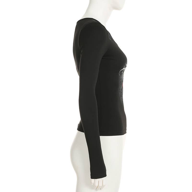 Vintage rose floral print lace patchwork T-shirt