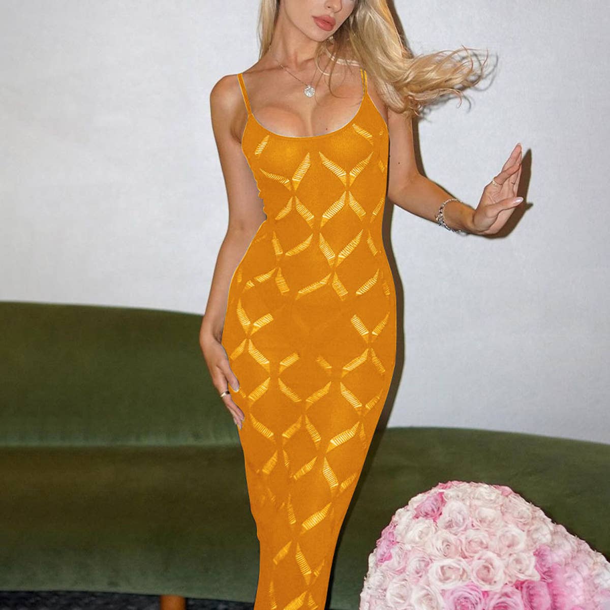 Wind diamond hollow wool dress