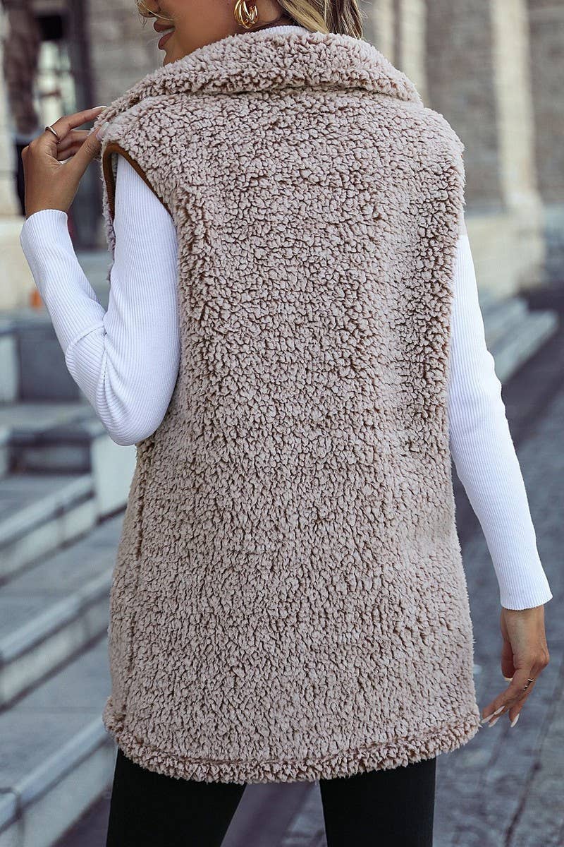 WOMEN BUTTON DOWN LAPEL SLEEVELESS FLEECE JACKET