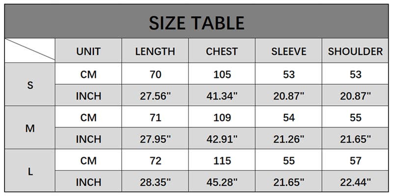 OUR PRODUCT SIZE STANDARDS ARE DIFFERENT, PLEASE CHECK THE SIZE INFORMATION BEFORE PLACING AN ORDER MADE IN CHINA