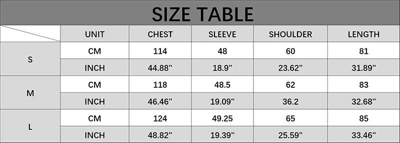 OUR PRODUCT SIZE STANDARDS ARE DIFFERENT, PLEASE CHECK THE SIZE INFORMATION BEFORE PLACING AN ORDER MADE IN CHINA