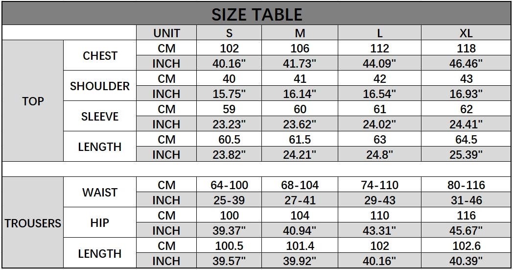 Features: Long sleeve top, full-length pants, elastic waistband, soft and breathable fabric