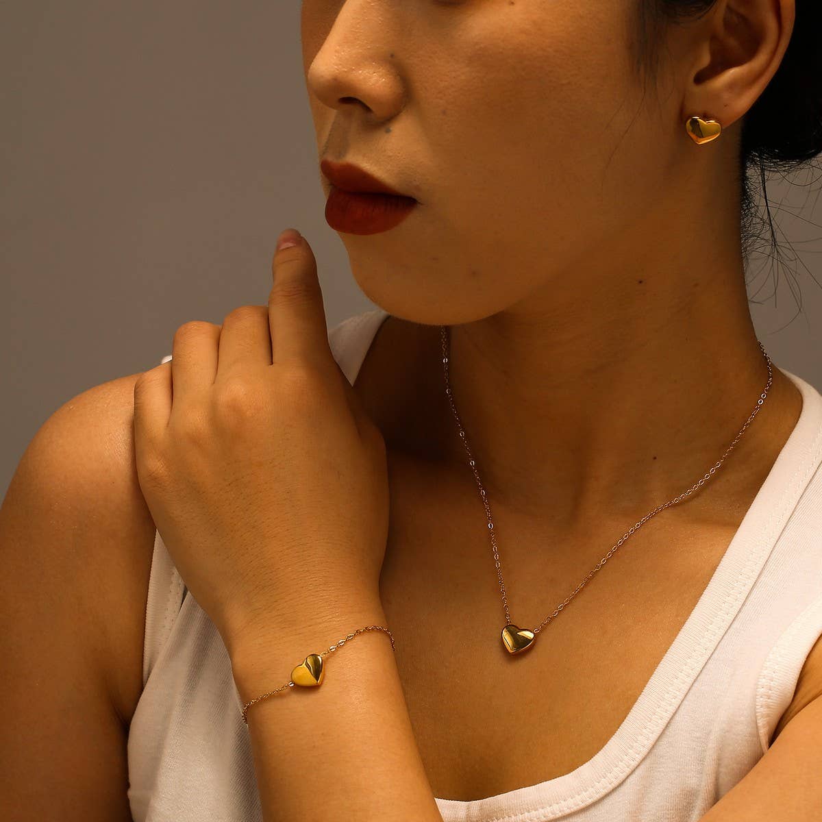 Women??¢s Stainless Steel Heart Jewelry 3-Piece Set_CWMM8880