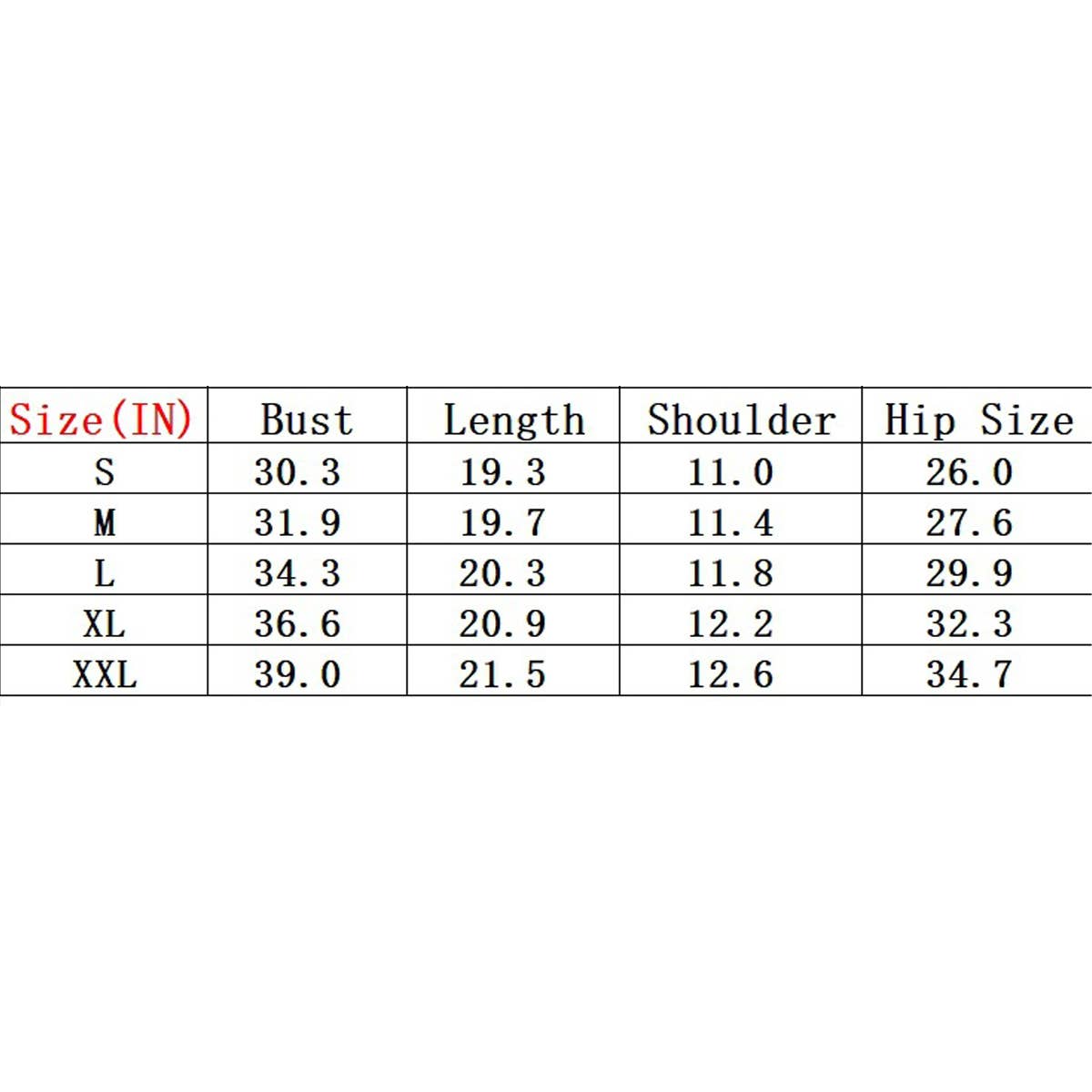 Sizes: S, M, L, XL, XXL