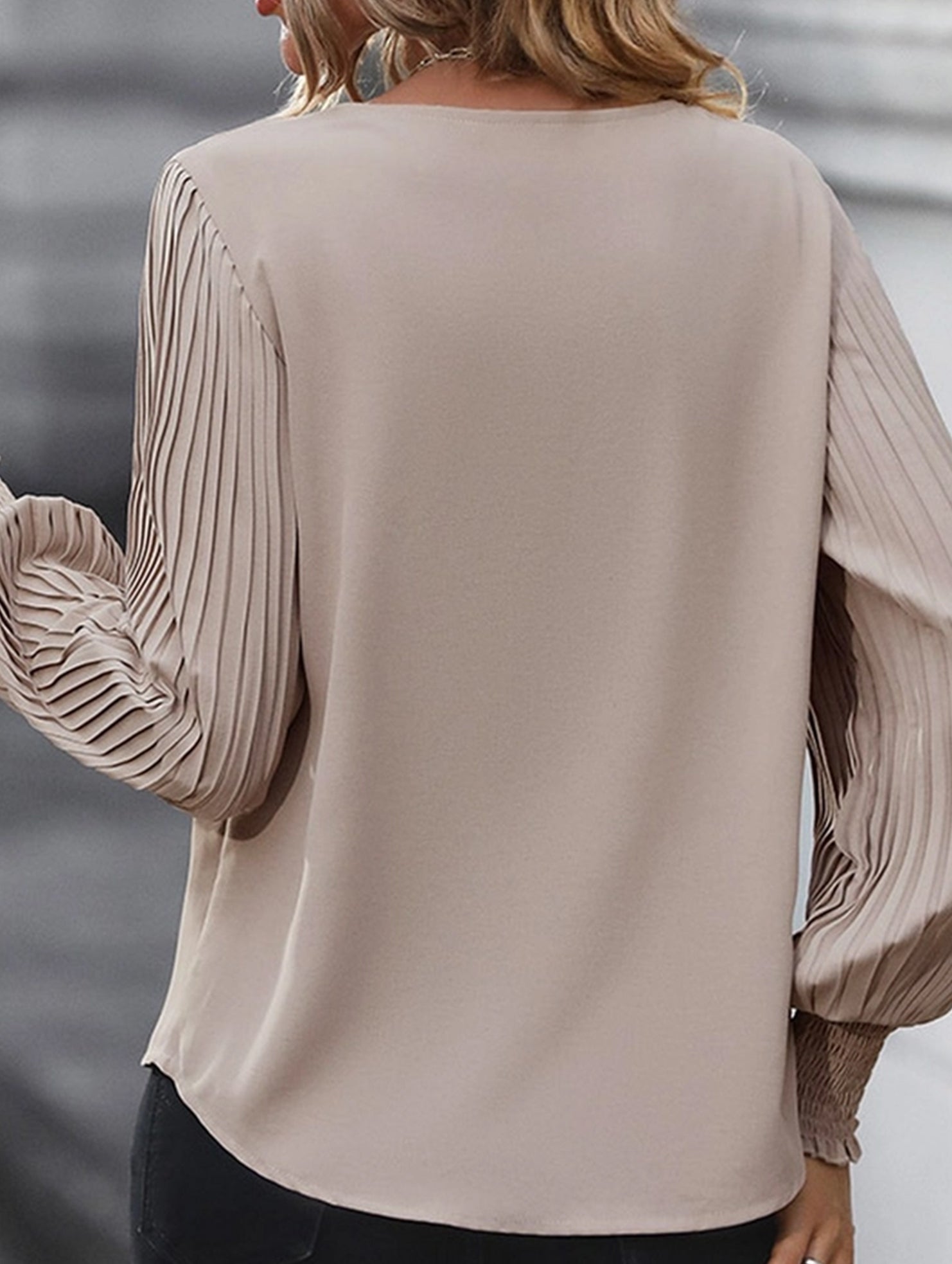 WOMEN V NECK SPLICE PLEATED SHIRT