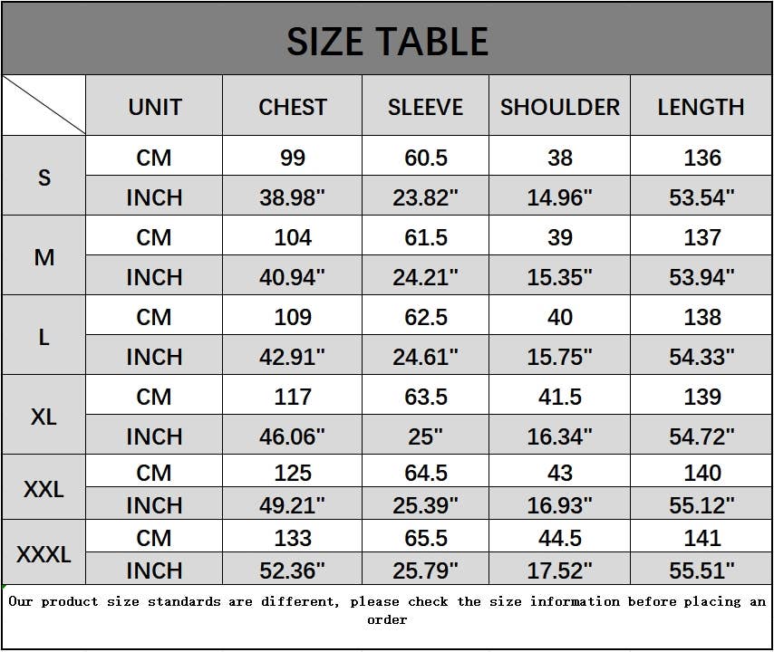 Sizes: S, M, L, XL, XXL, XXXL