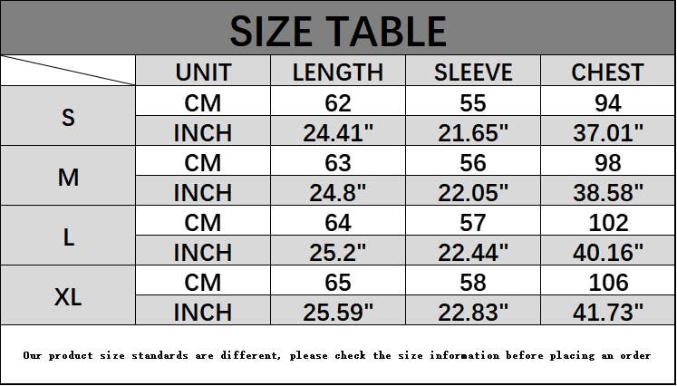 Sizes: S, M, L, XL