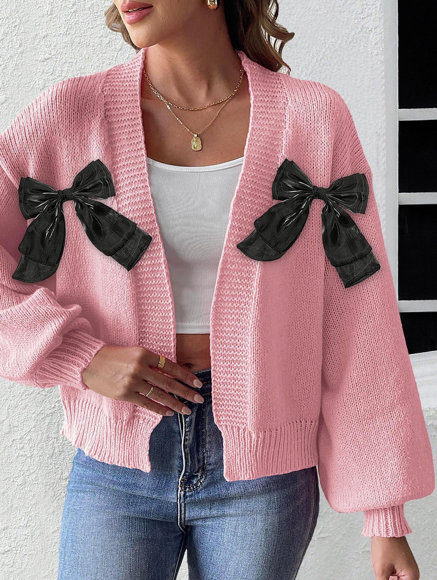 Women's Ribbon Bow Spliced Cardigan Sweater