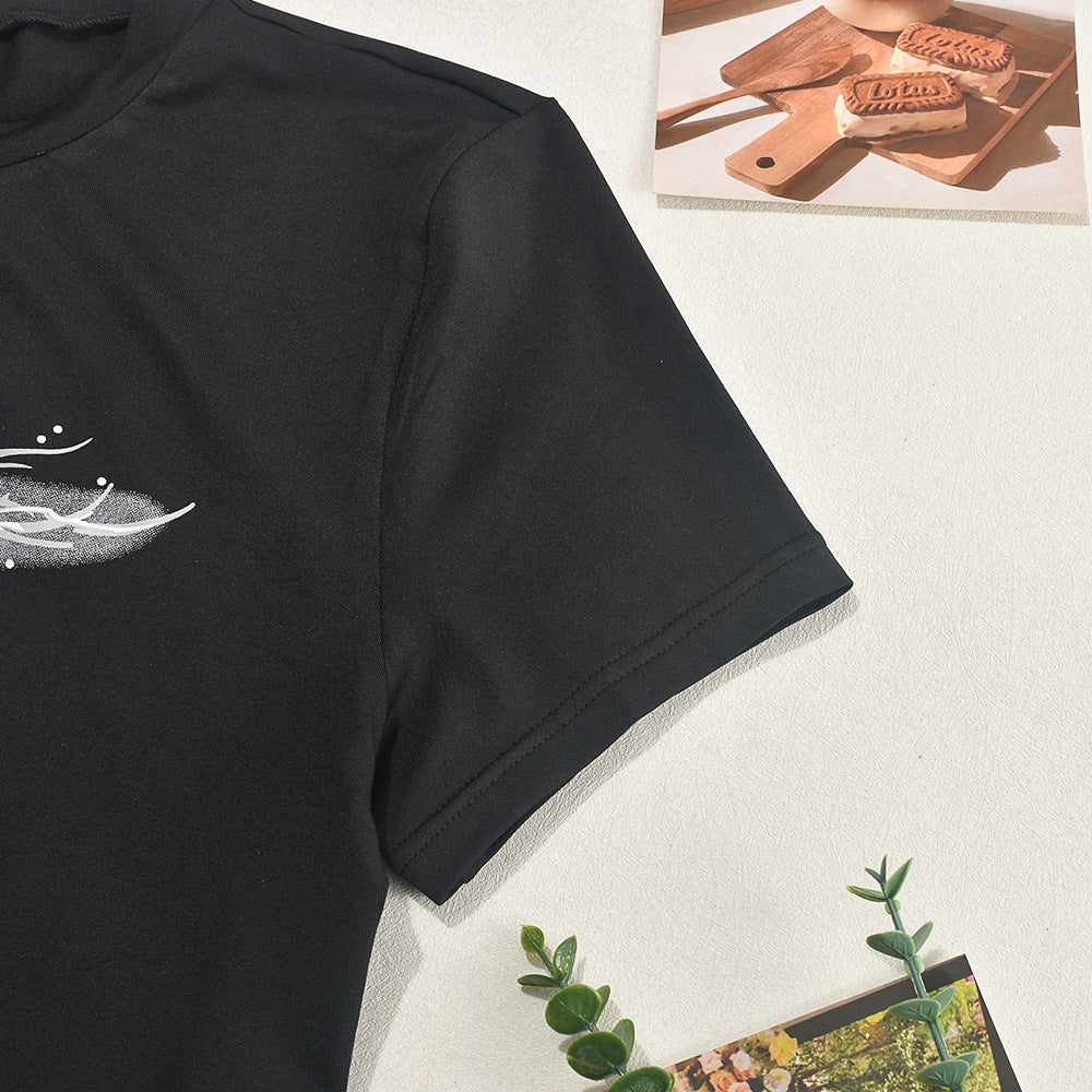 Womens Short Sleeve Glue Flower Pattern T Shirt