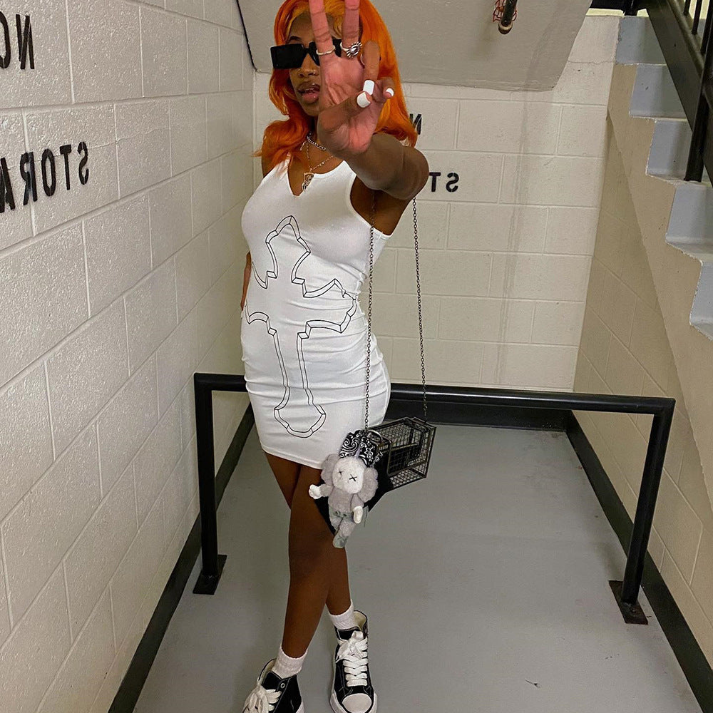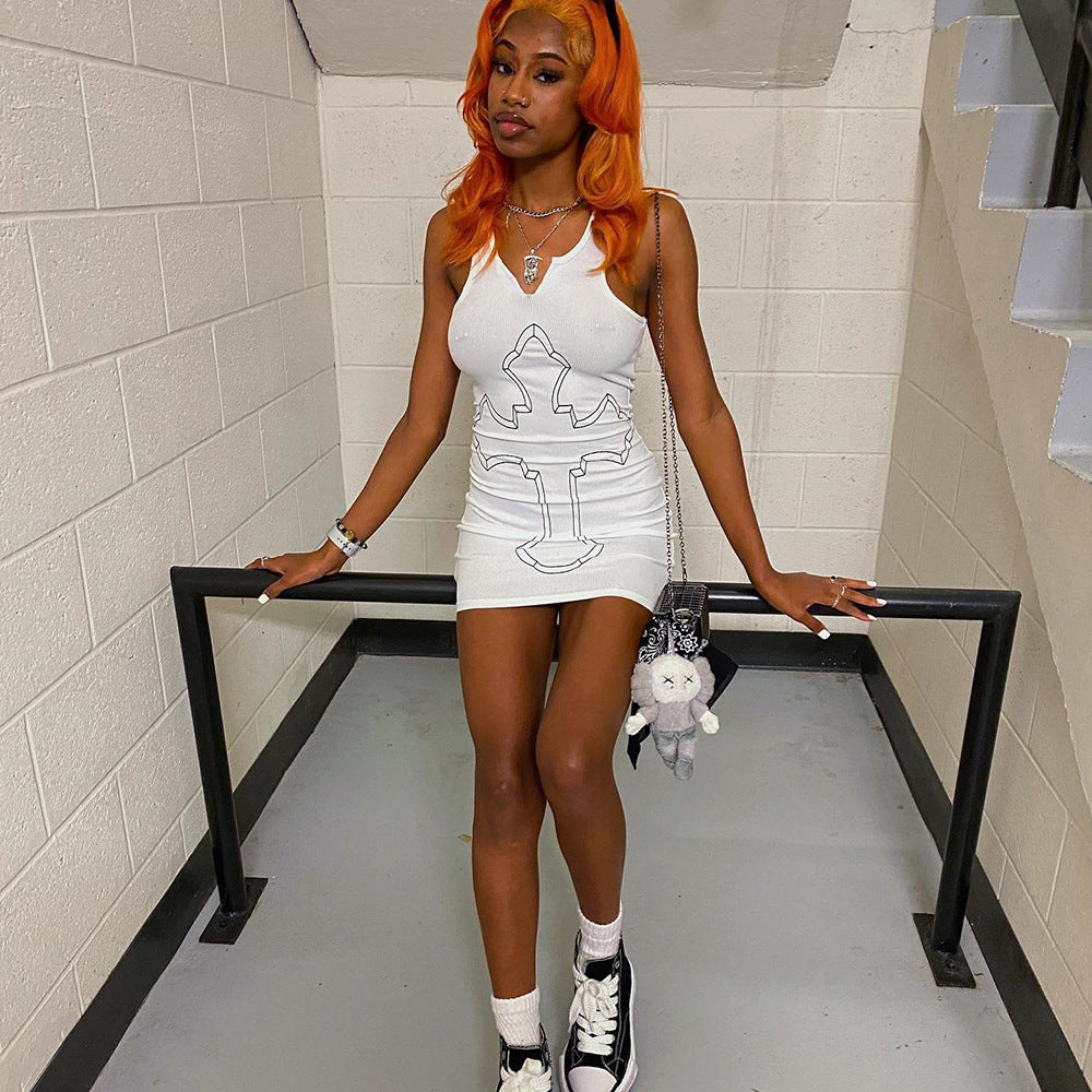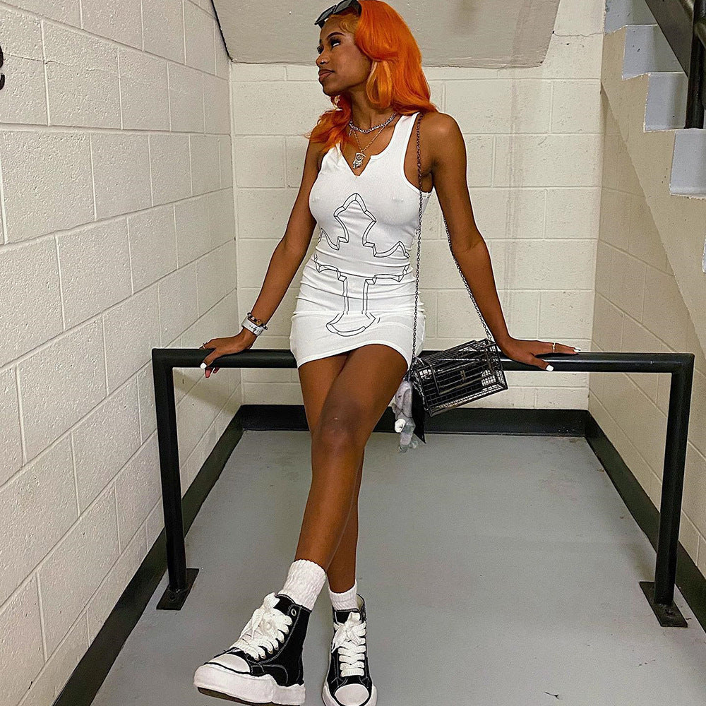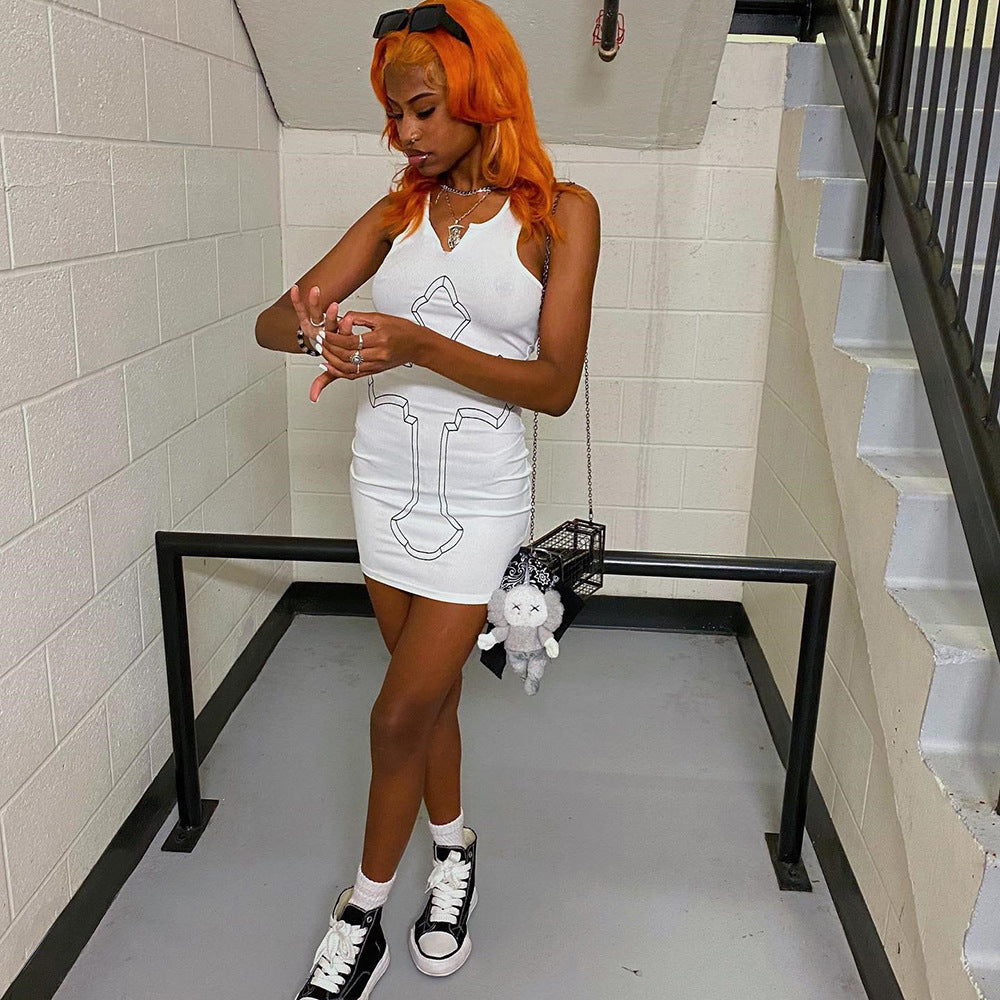 Womens U Neck Cross Print Bodycon Trendy Mini Dress