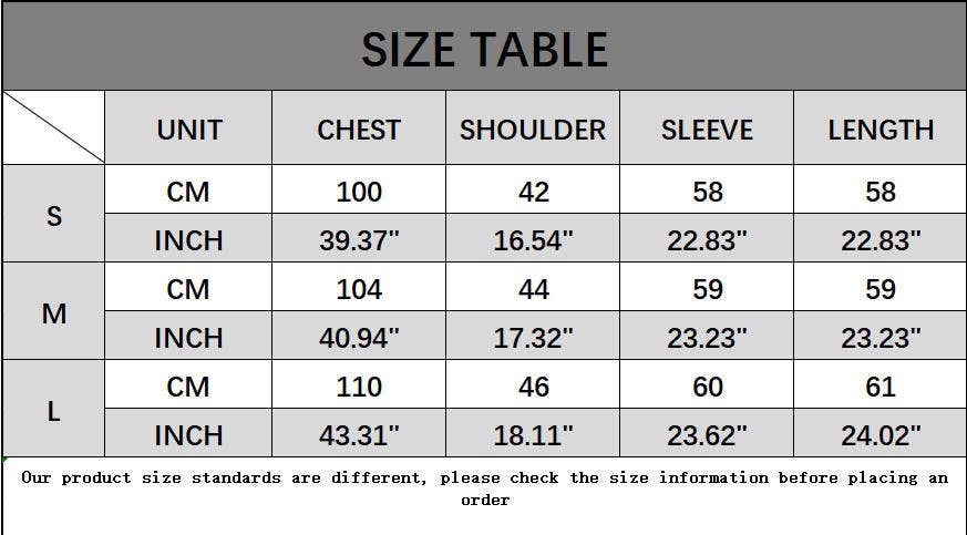 Sizes: S, M, L