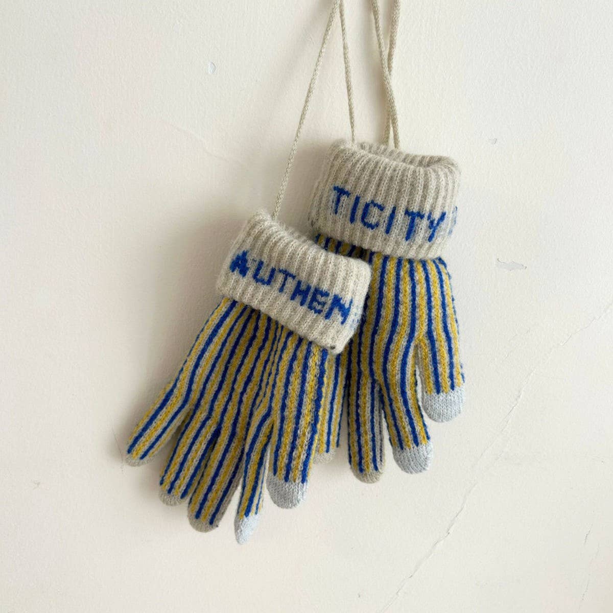 WOOLEN STRIPED TOUCH SCREEN WARM HALTER GLOVES