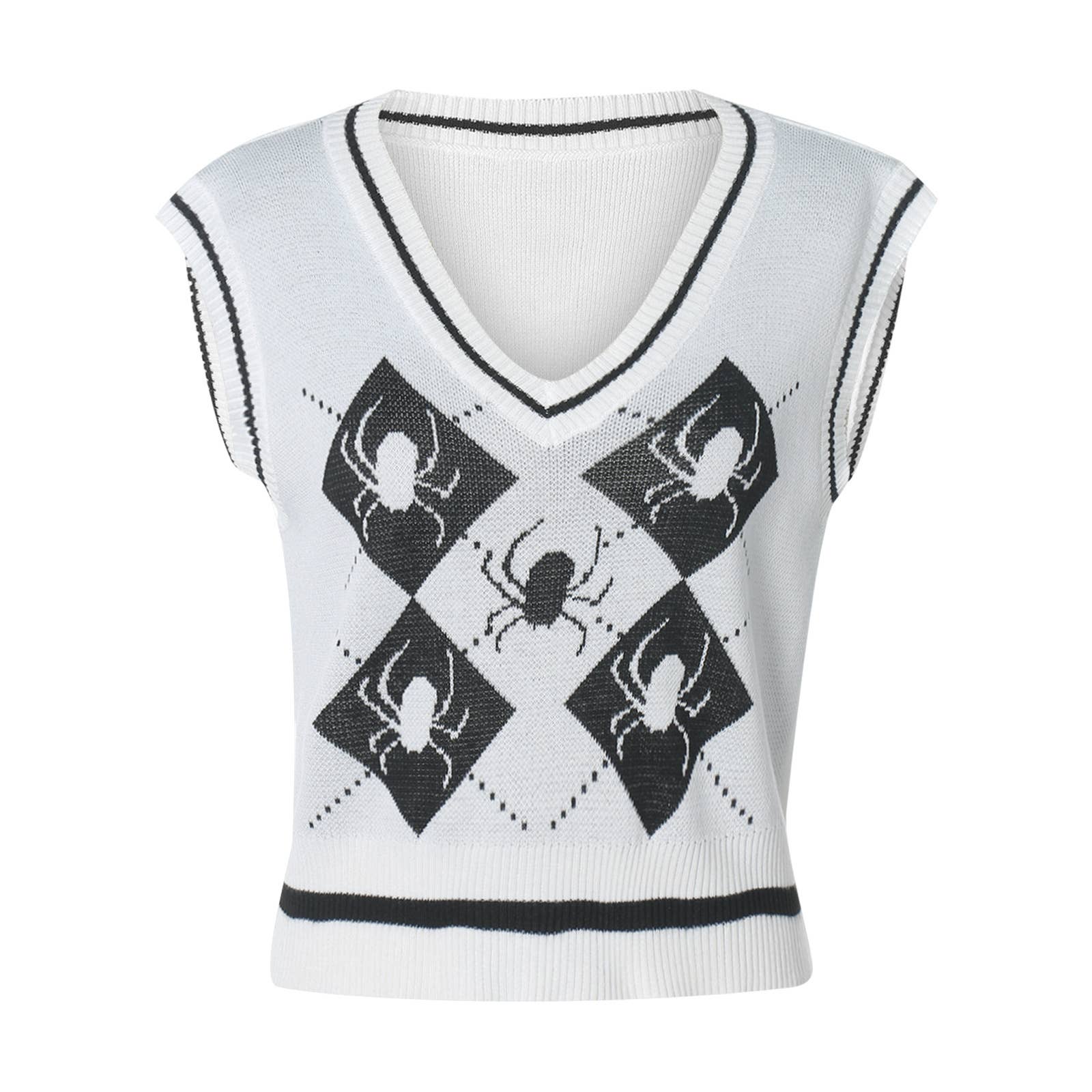 Get into the festive spirit with this Knitted Halloween V-Neck Pullover Vest. Crafted with a soft and stretchy knit, this vest brings cozy comfort and a playful seasonal vibe. Its V-neck design and relaxed fit make it perfect for layering over shirts or wearing solo for a trendy Halloween-ready look.