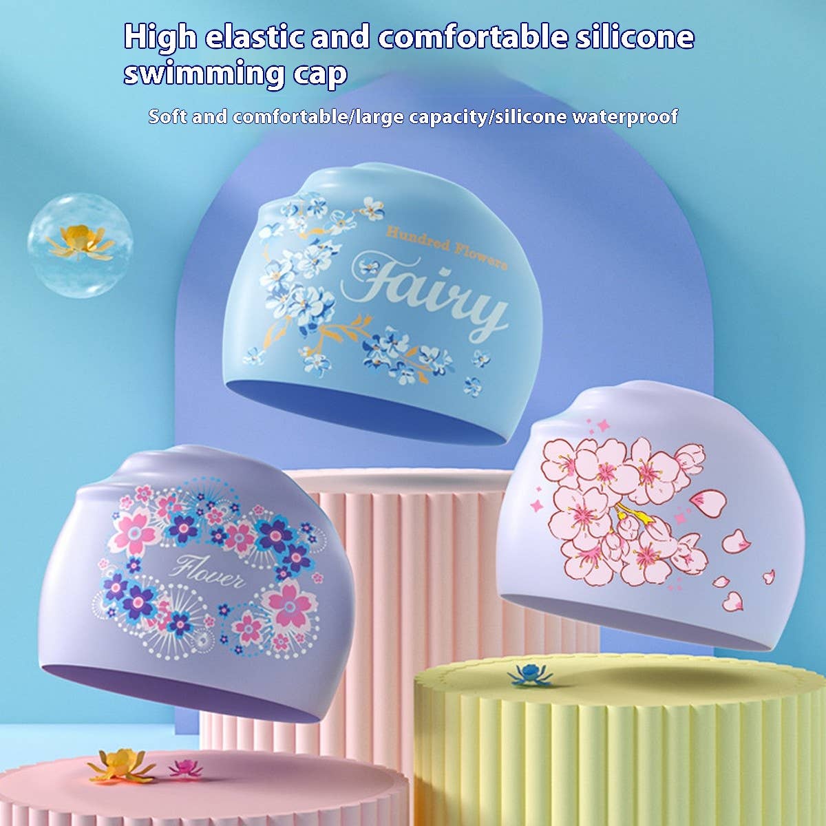 XL Printed Silicone Swim Cap for Long Hair Women_CWMM6704